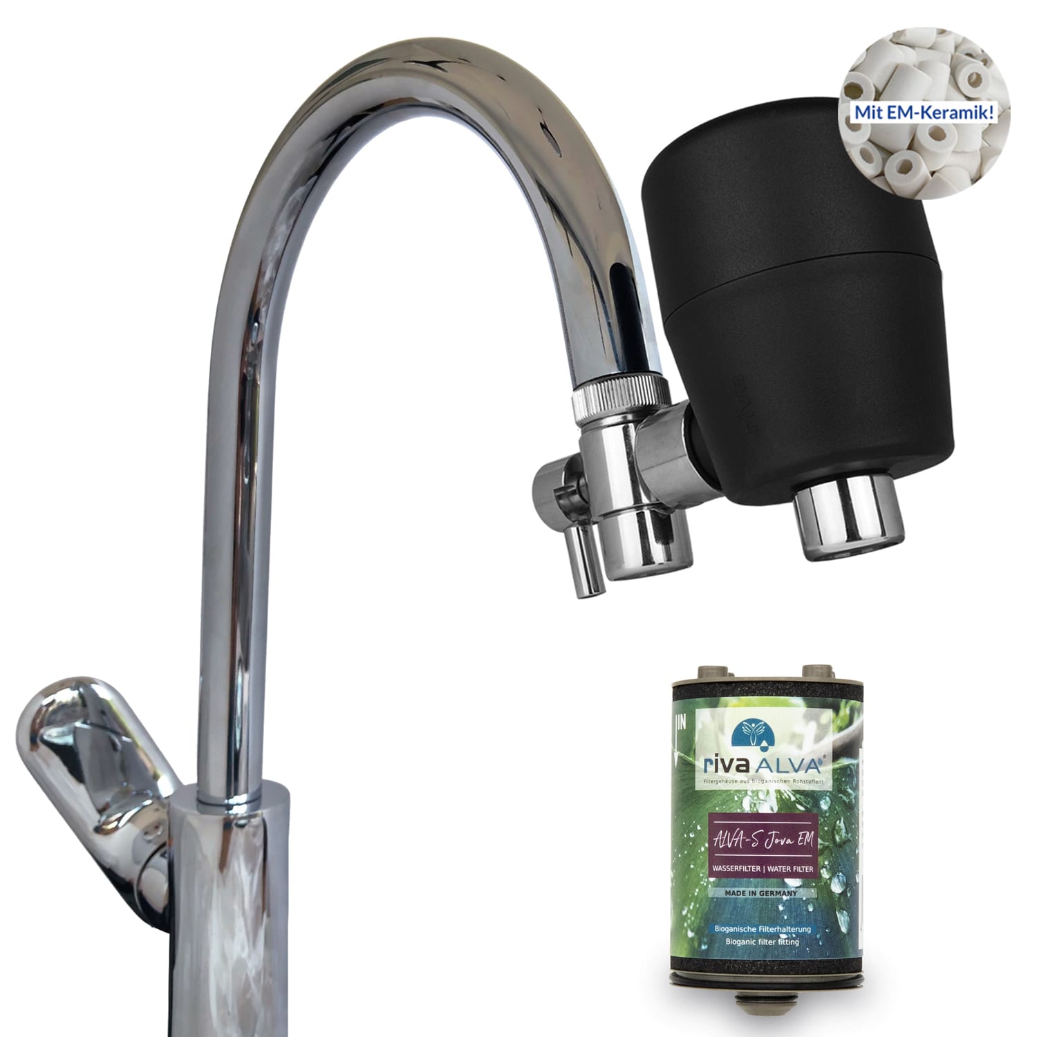 rivaALVA-S Jova EM | Trinkwasserfilter direkt am Wasserhahn | 2in1 Blockaktivkohlefilter mit EM Keramik plus Bakterien- u. Virenfilter in bioganischem Gehäuse